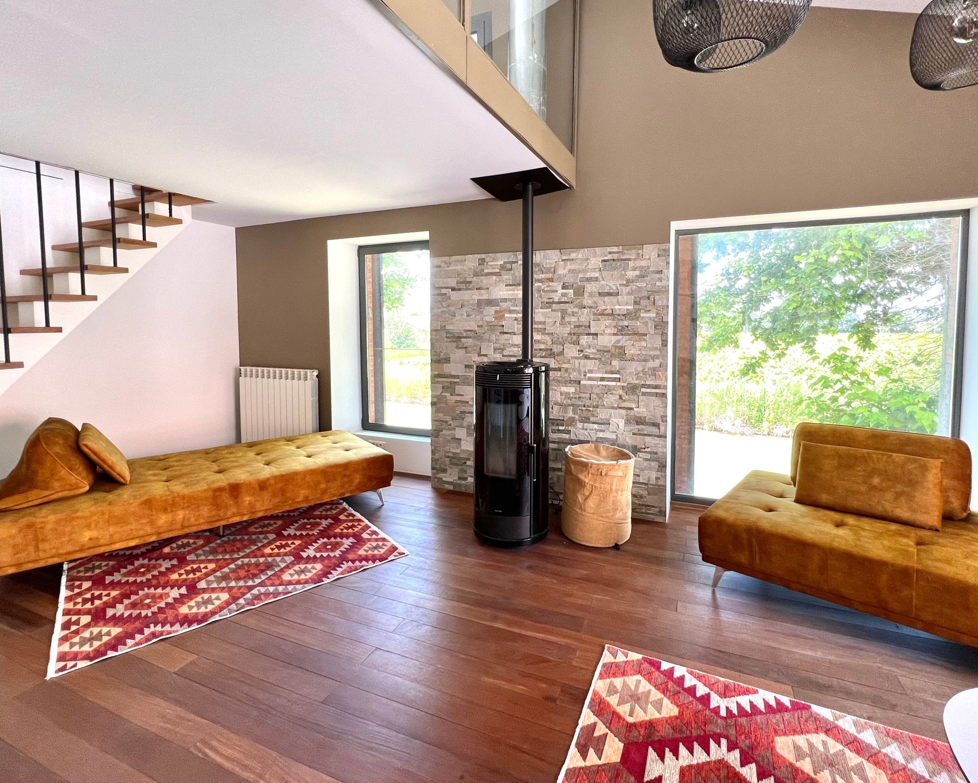 The living room also has a cozy fireplace and flexible sofas - perfect for relaxing, enjoying, reading or simply having a good conversation in a large group with a glass of wine.
