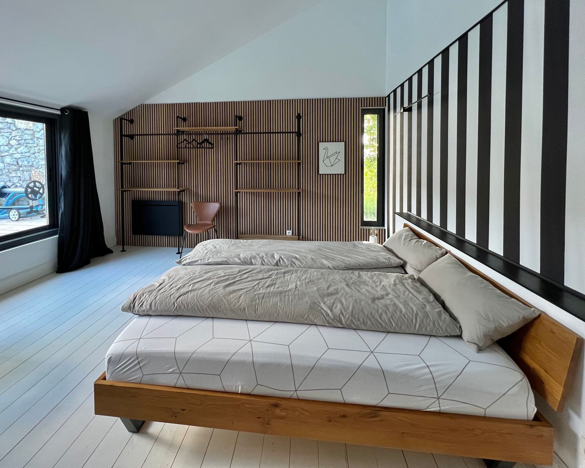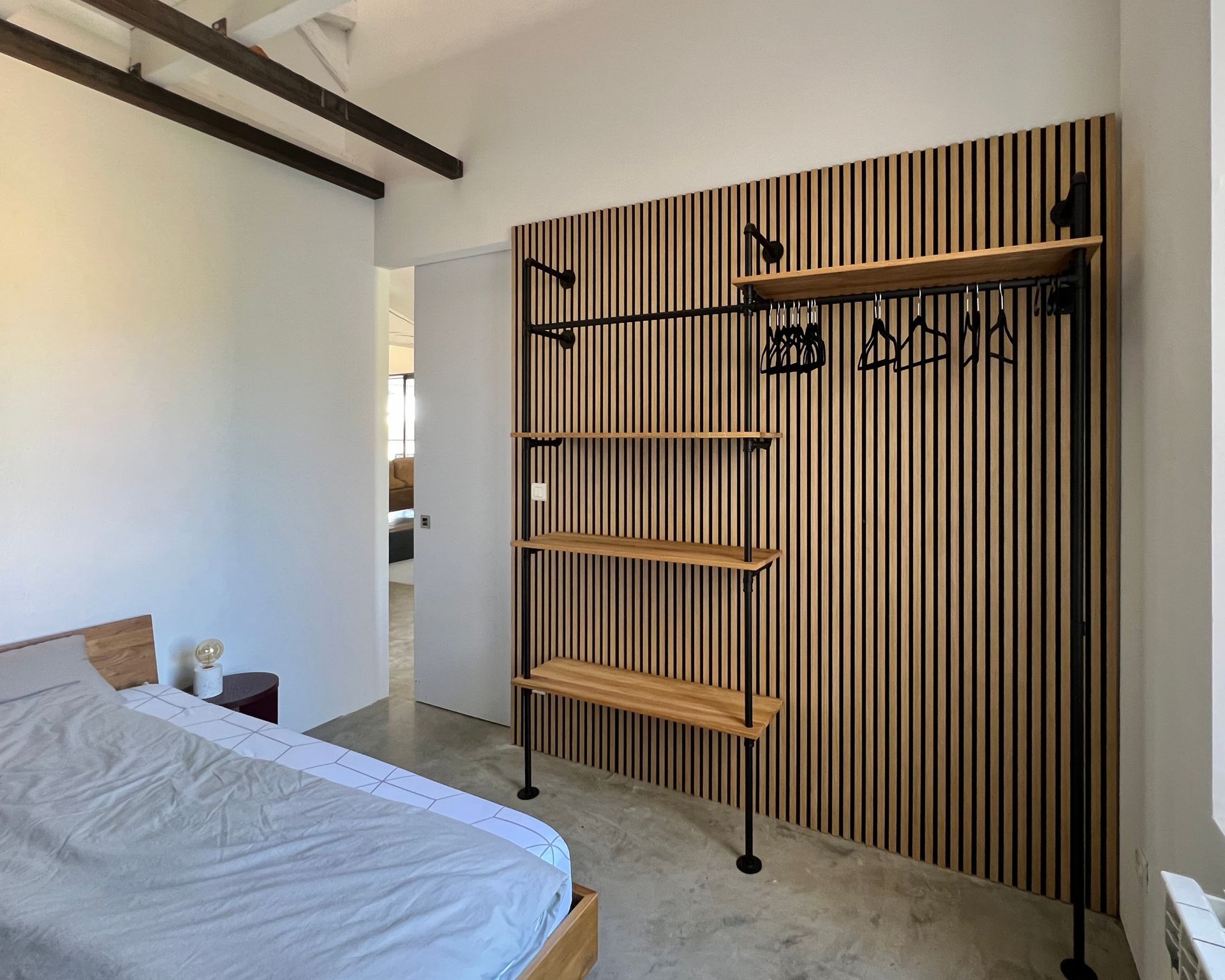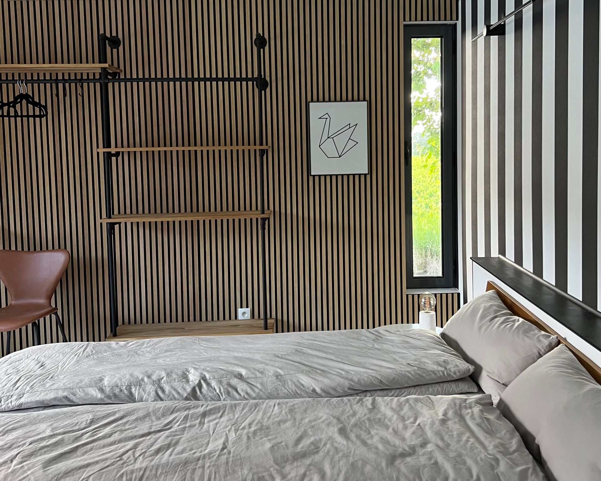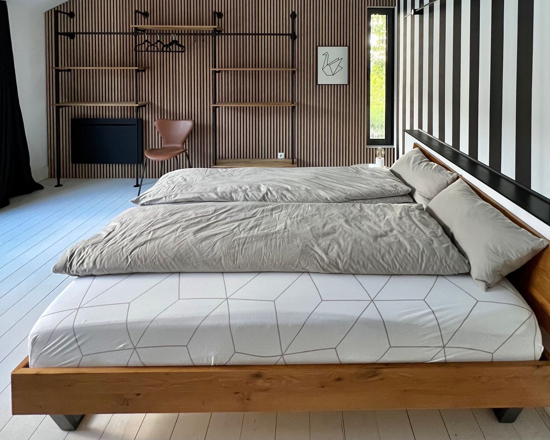 The acoustic panels and the flexible wardrobe from PAMO also create a pleasant room climate.