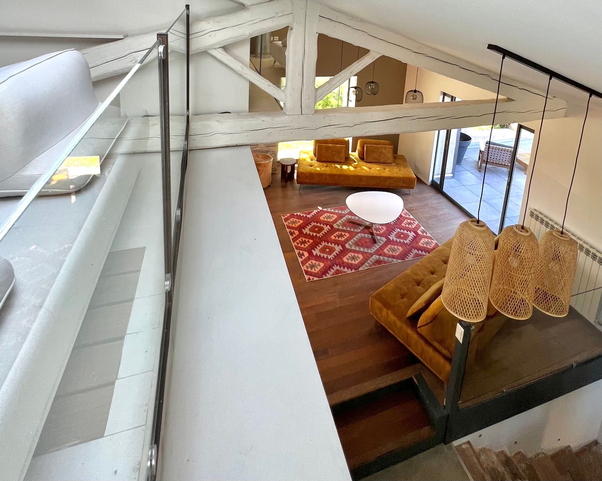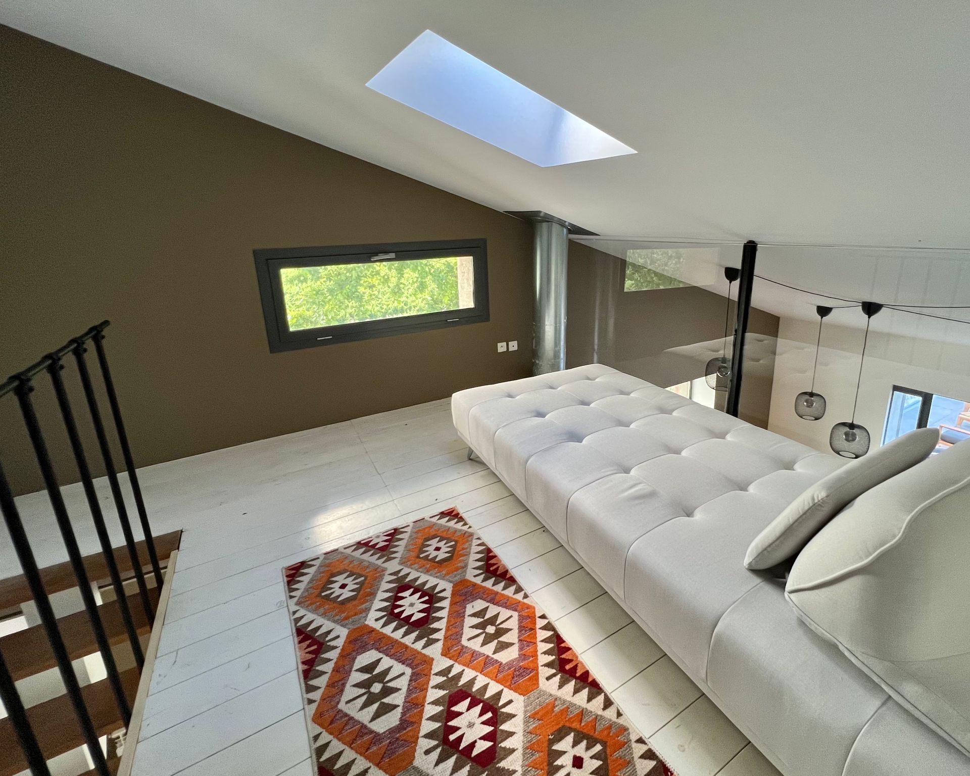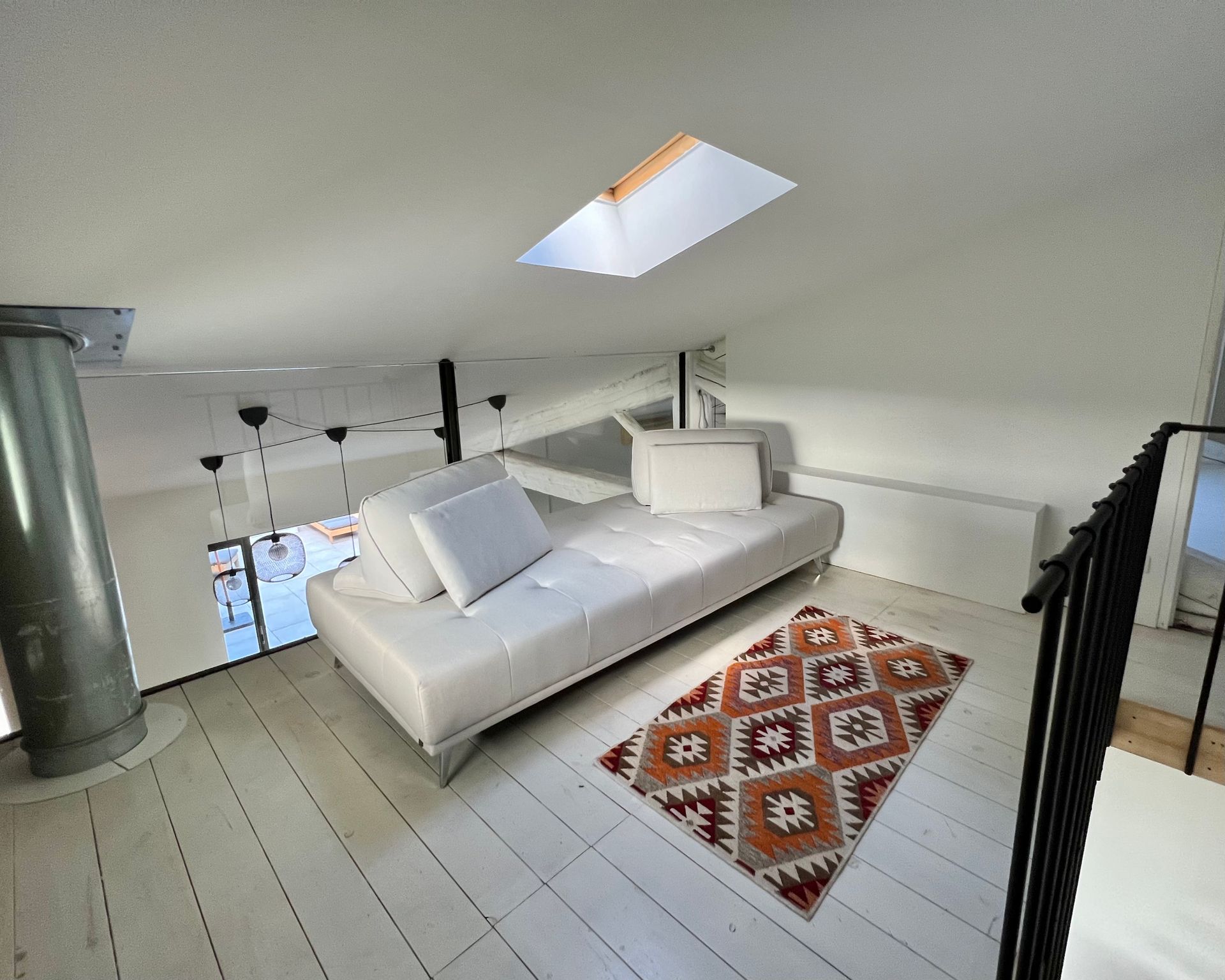 Above the living room is the gallery with two additional sofas that can be converted into sleeping accommodation.