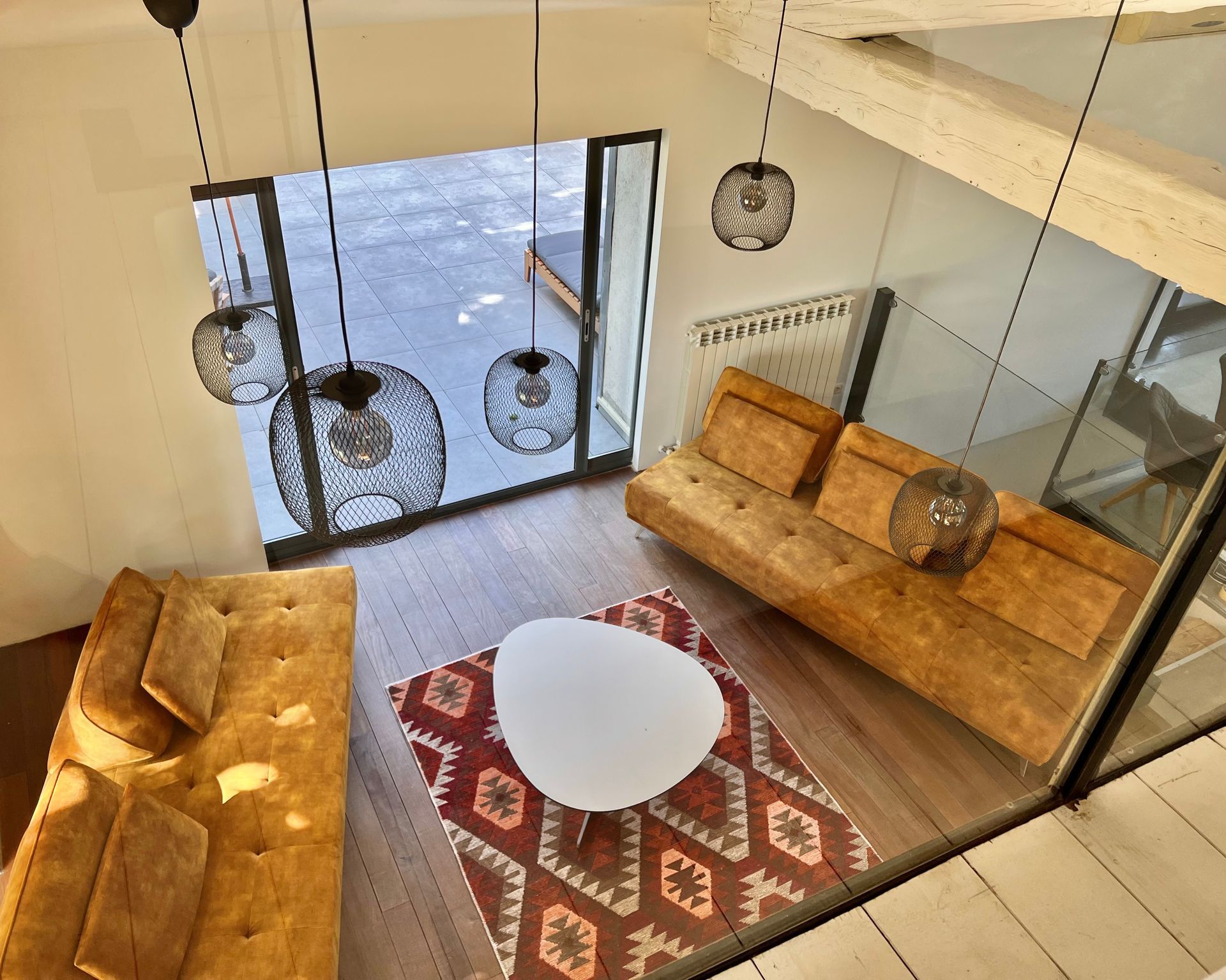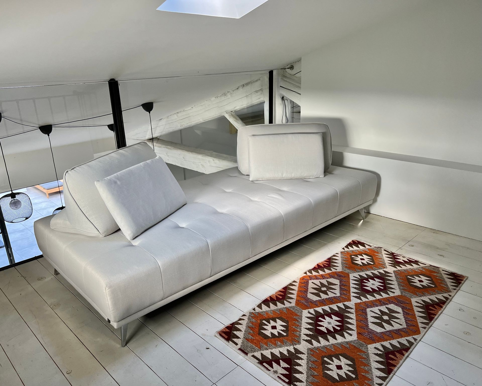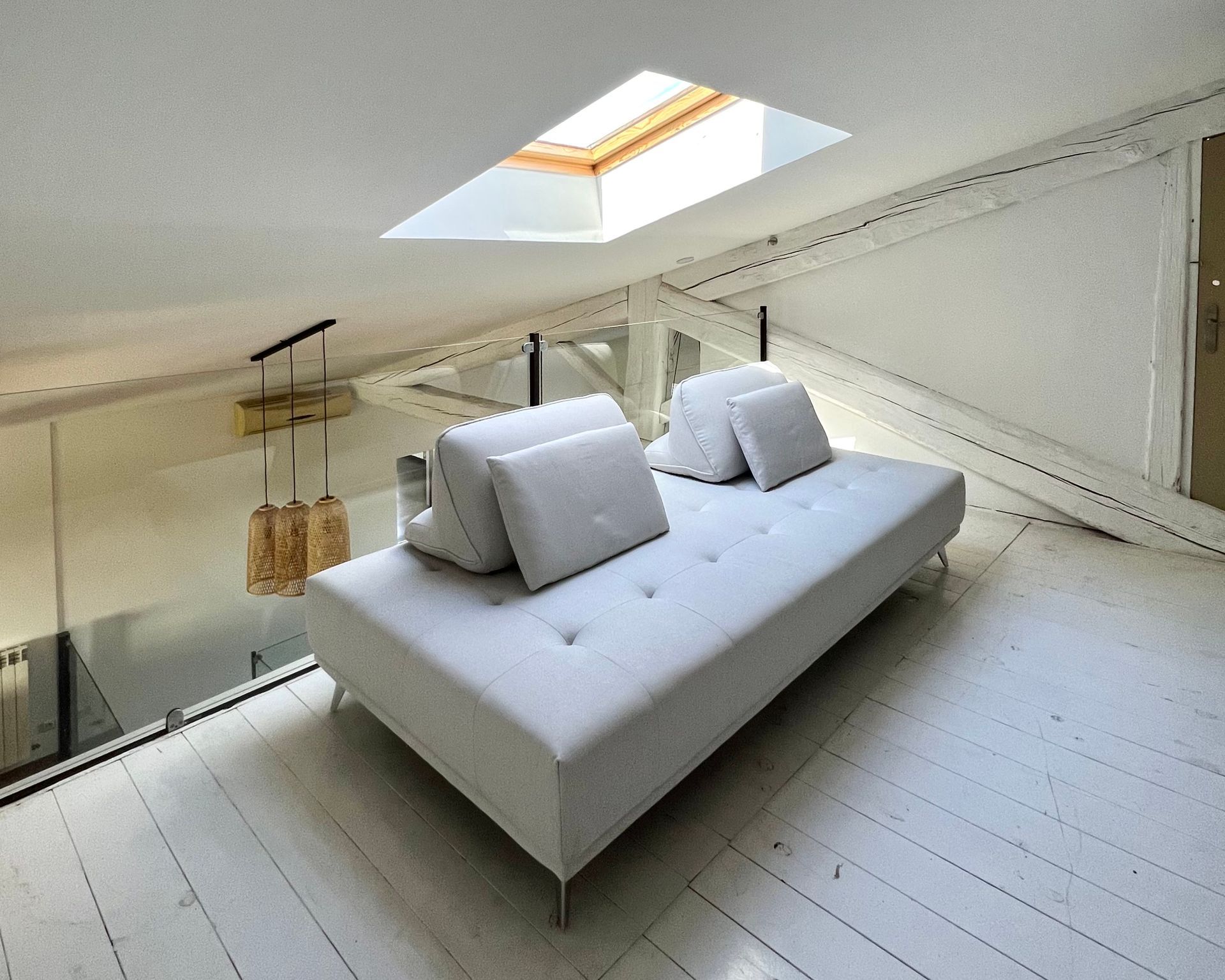 Above the living room is the gallery with two additional sofas that can be converted into sleeping accommodation.