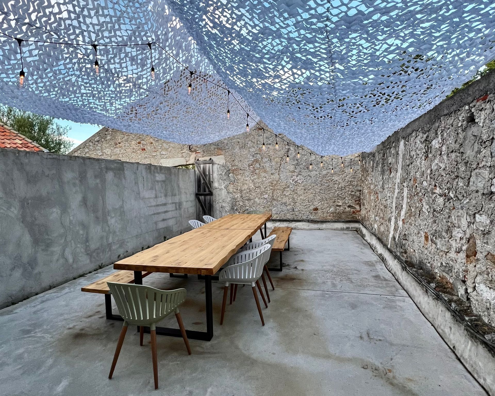 The camouflage net is also special here, as it protects you from too much sun and creates wonderful shadow games.