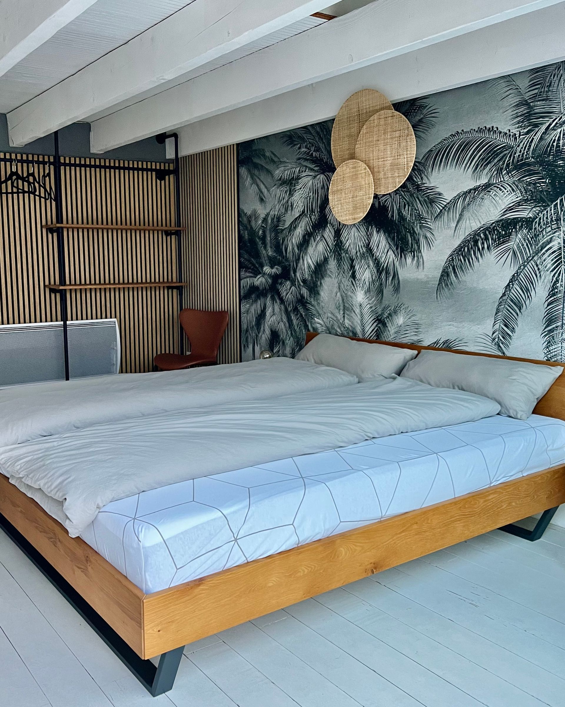 All king-size beds are made of solid wood and are equipped to a high quality: an EMMA mattress with topper and feather-light bed linen further increase your well-being for a perfectly rested sleep.