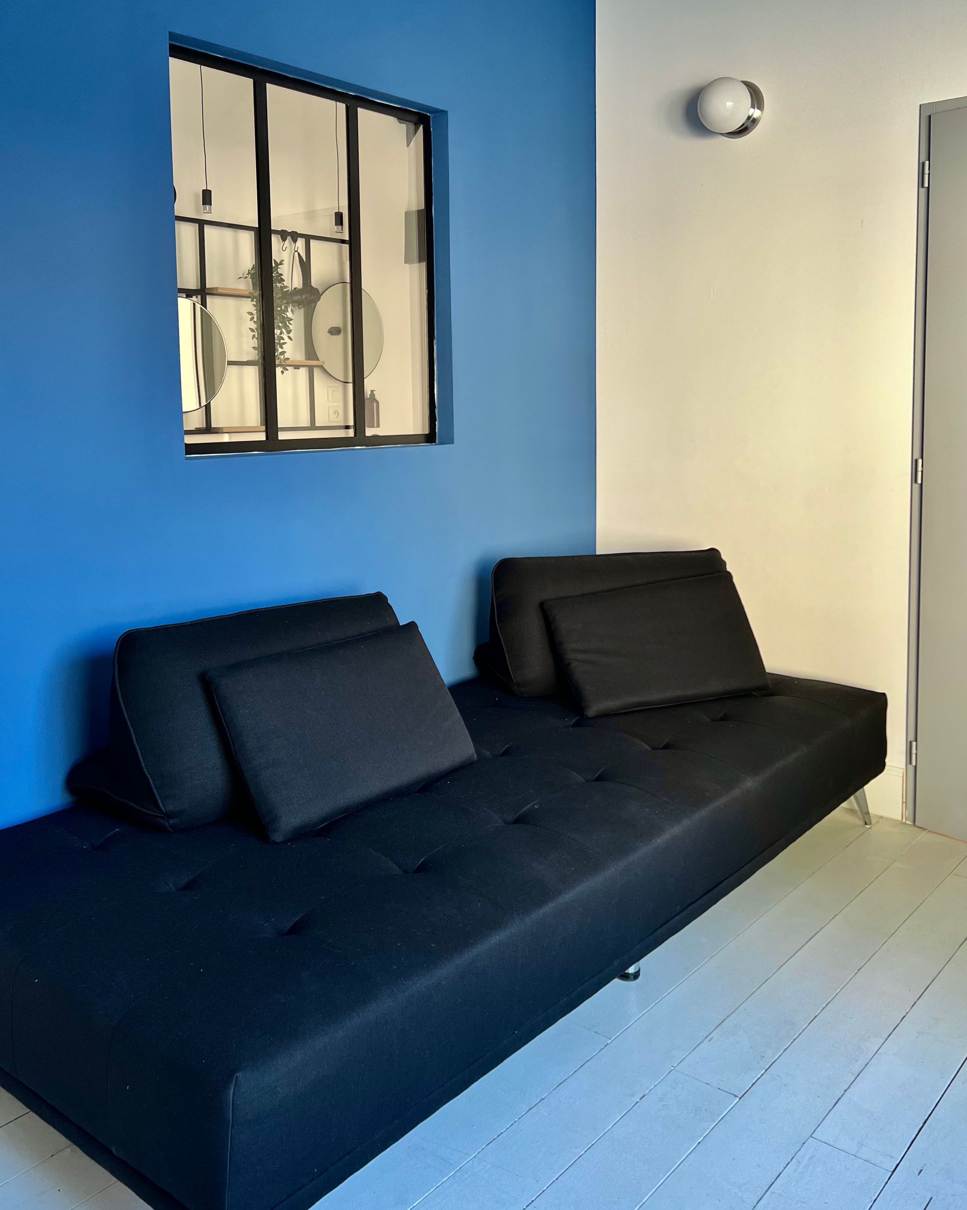 This room is directly adjacent to the third bedroom and has a couch that can quickly be converted into an oversized single bed. The lying surface is 240cm by 110cm and you will receive an extra topper from us so that you can sleep on it even more heavenly.